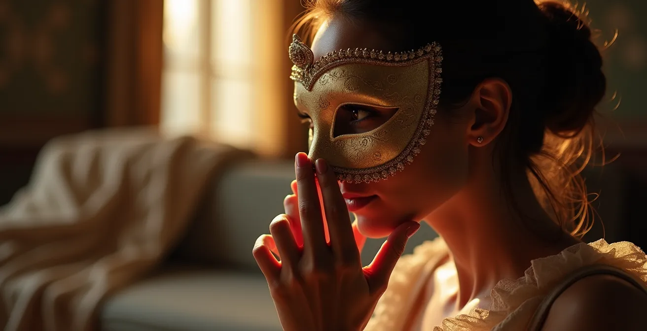 Le masque n’est pas un simple accessoire, c’est un outil psychologique puissant. Que ce soit un loup vénitien qui ne cache que le regard ou un masque plus couvrant, son effet principal est de créer une distance protectrice avec votre identité quotidienne. Il agit comme un « quatrième mur » mental, vous autorisant à explorer des facettes de votre personnalité ou des comportements que vous n’oseriez peut-être pas assumer à visage découvert. C’est une permission que vous vous accordez à vous-même, et à votre partenaire, pour sortir du cadre habituel.